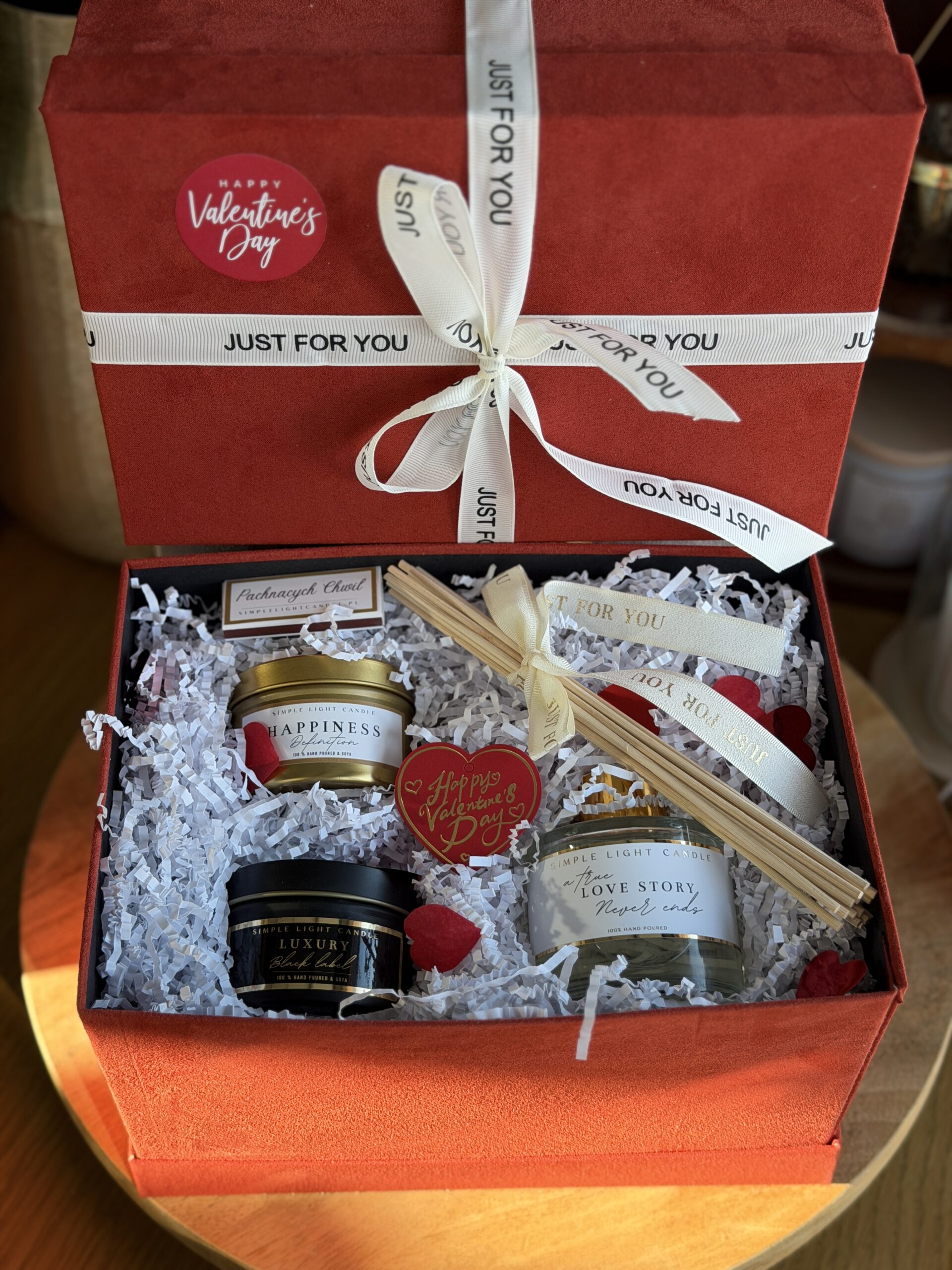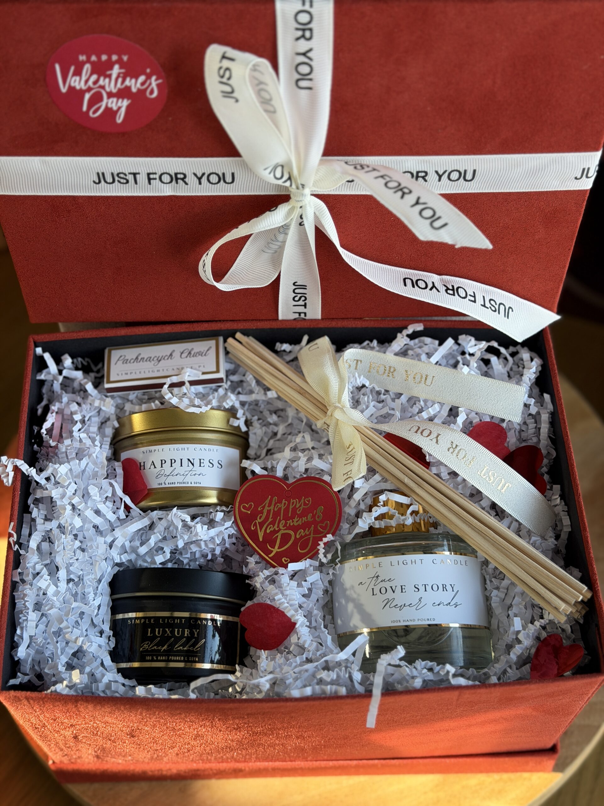 Do zestawu możesz wybrać dowolny zapach dyfuzora z kolekcji dostępnych na stronie. Świece sojowe 100m dostępne w zapachach: Luxury, Happines, Chanel oraz Love Story.